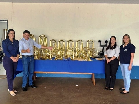 Durante a entrega dos novos instrumentos, o prefeito Guga destacou a importância do investimento e o compromisso da gestão com o fortalecimento das atividades culturais e educacionais do município: